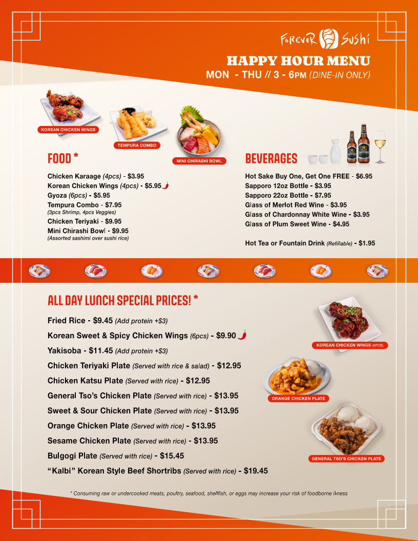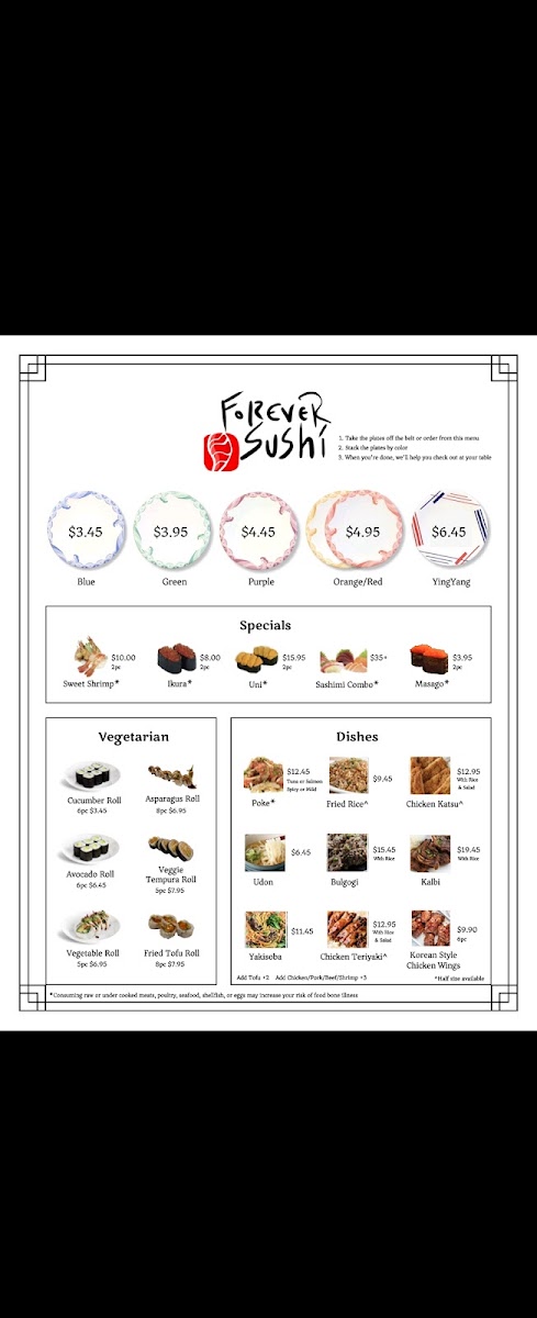 Their rolls are known for their creativity and quality ingredients, from tender fish to perfectly seasoned rice. If you're not into sushi, there are plenty of options like crispy tempura or savory teriyaki dishes to enjoy. With its welcoming atmosphere and a menu that promises both variety and quality, Forever Sushi is the perfect place to satisfy your cravings and enjoy a meal with friends or family.