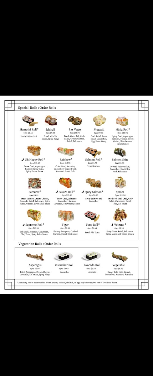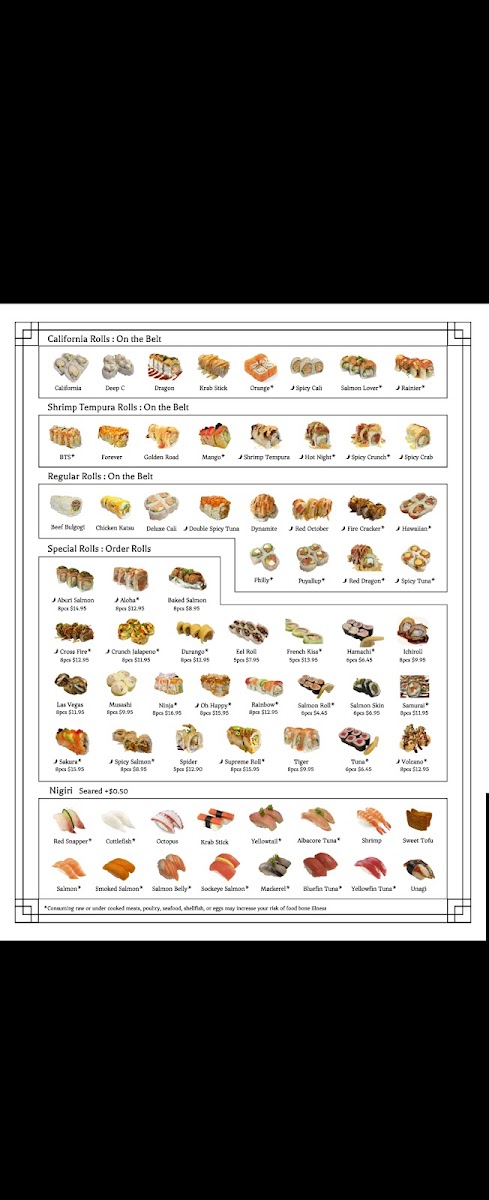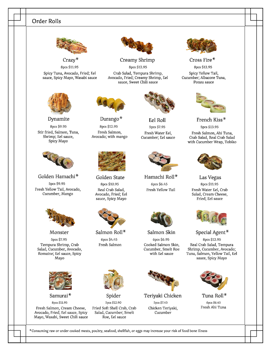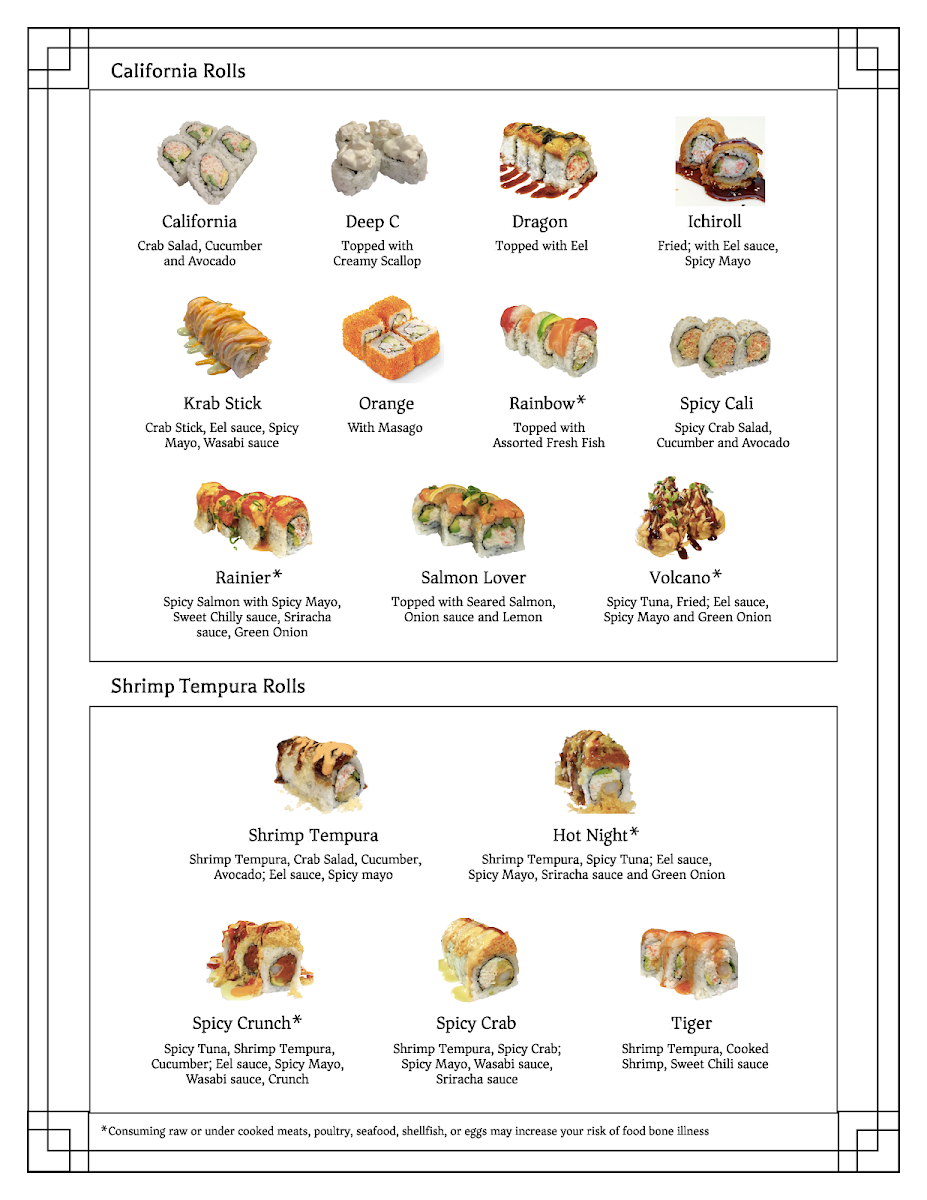 Cali with eggs. Consuming raw or undercooked seafood may increase your risk of foodborne illnesses.