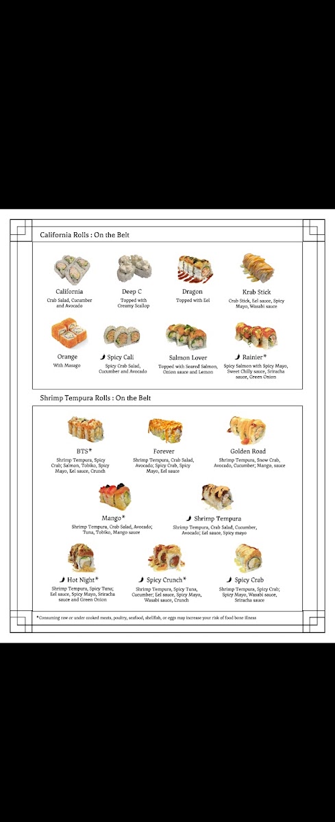 Spicy. Consuming raw or undercooked seafood may increase your risk of foodborne illnesses.